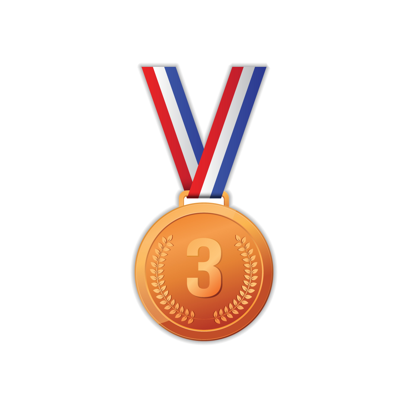 digital image of a round bronze medal on a red white and blue strap with the number 3 at the centre
